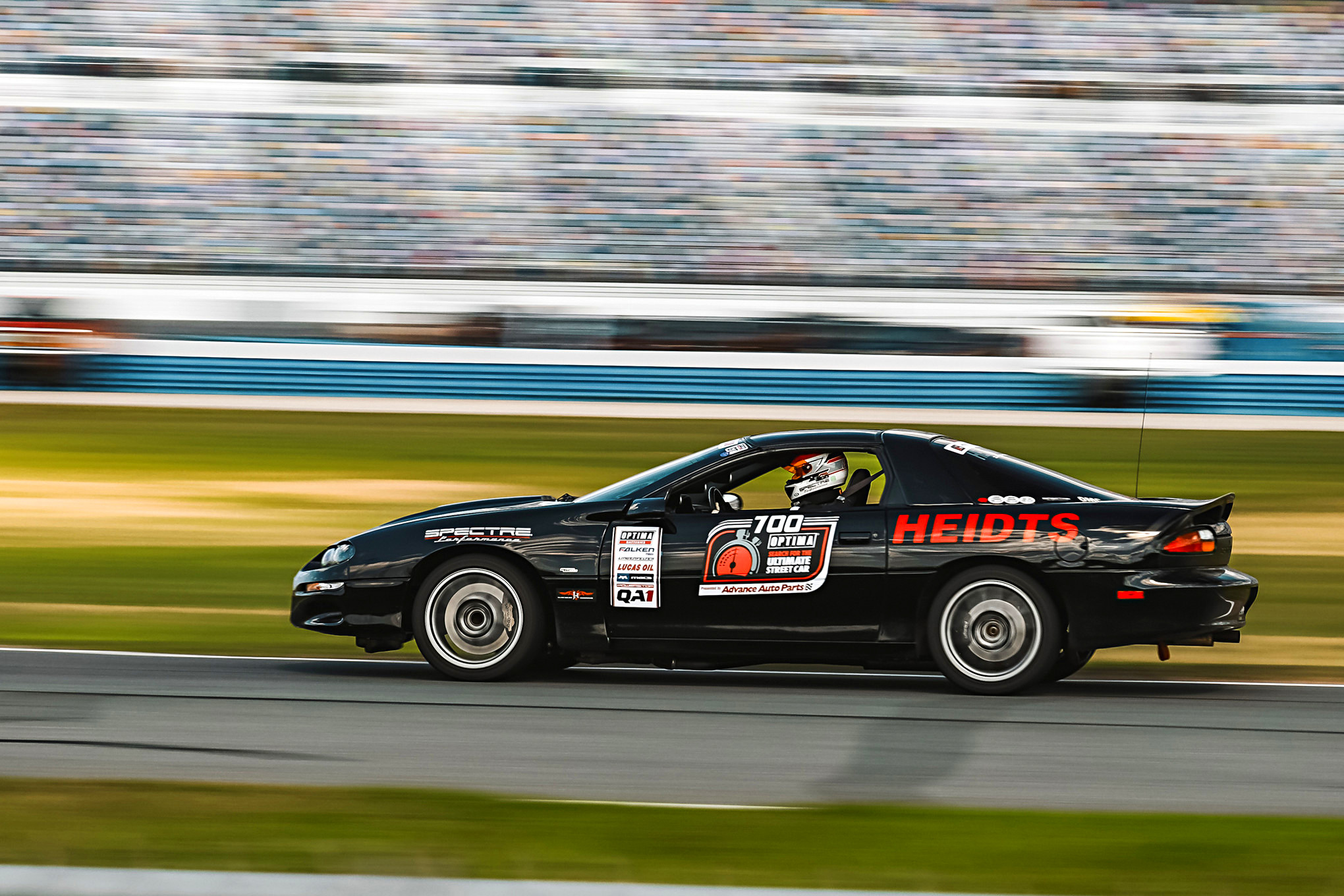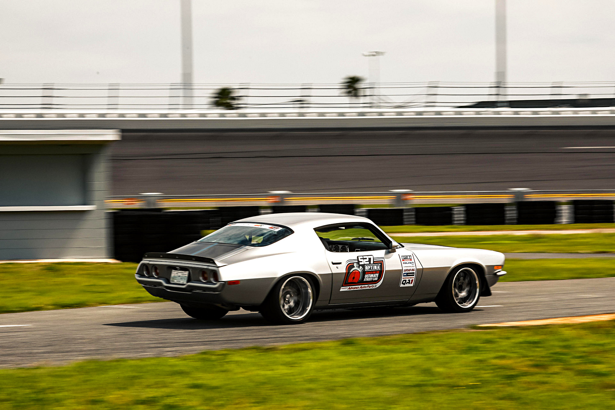 The thrash was real for Ed Michalak and there obviously wasn’t time for paint before he brought his ’69 Camaro to Daytona, but he was all smiles as he headed out onto the high banks.